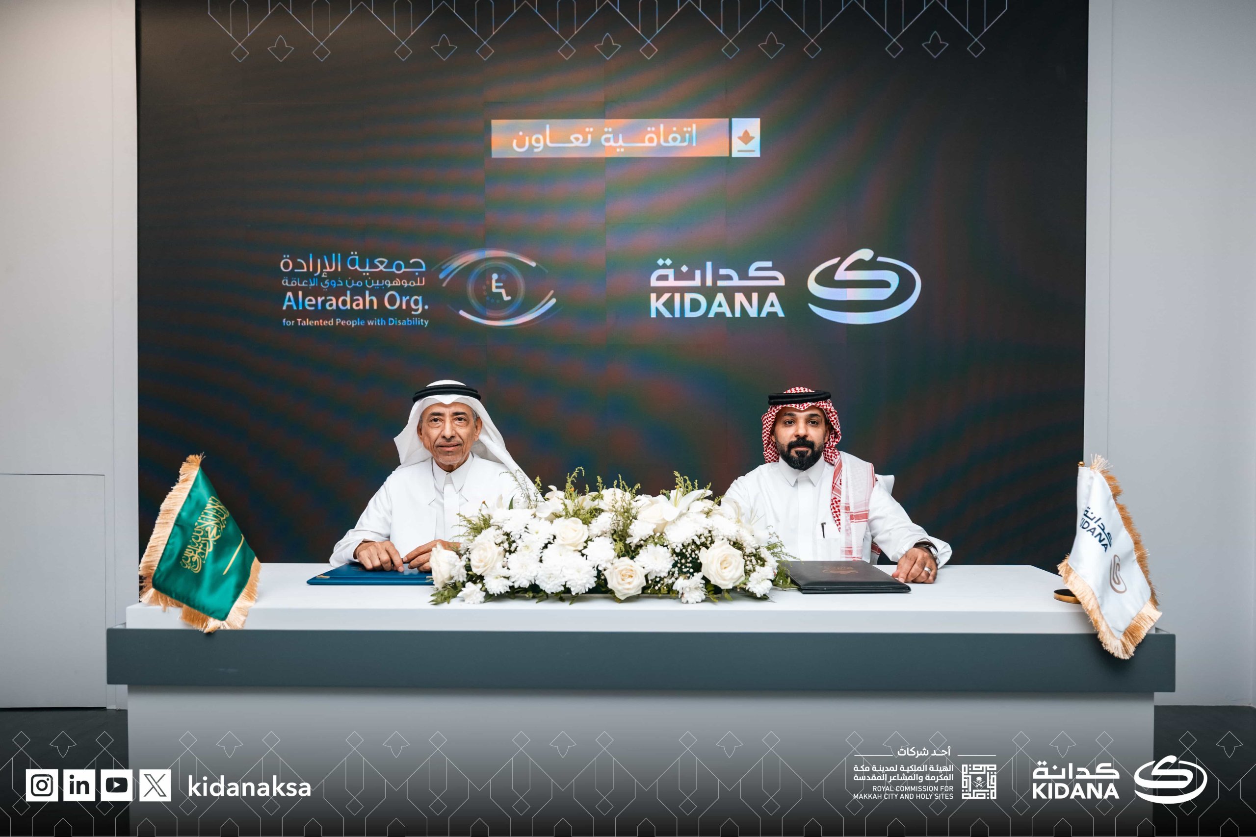 وقّعت شركة كدانة اتفاقية تعاون مع جمعية الإرادة للموهوبين من ذوي الإعاقة، بهدف تمكين الموهوبين في الفرص التدريبية، وتحقيق التكامل التنموي في تطوير المبادرات والأنشطة الداعمة لهم، إضافة إلى تبادل الخبرات وتنظيم برامج تدريبية مشتركة. وتسهم الاتفاقية في تمكين القطاع غير الربحي ودعم تحقيق رؤية 2030، بما يعزّز دور كدانة في تطوير الخدمات المرتبطة بالمشاعر المقدسة.